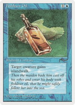 This creature can't attack unless defending player controls an Island. When you control no Islands, sacrifice this creature.