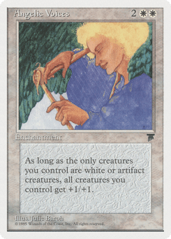 Creatures you control get +1/+1 as long as you control no nonartifact, nonwhite creatures.