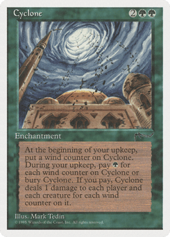 At the beginning of your upkeep, put a wind counter on this enchantment, then sacrifice this enchantment unless you pay {G} for each wind counter on it. If you pay, this enchantment deals damage equal to the number of wind counters on it to each creature and each player.