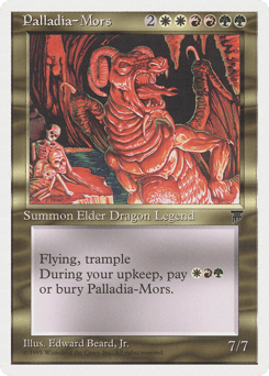 Flying, trample At the beginning of your upkeep, sacrifice Palladia-Mors unless you pay {R}{G}{W}.