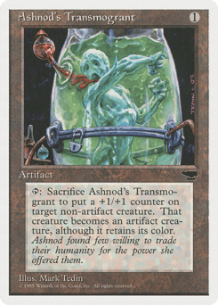 {T}, Sacrifice this artifact: Put a +1/+1 counter on target nonartifact creature. That creature becomes an artifact in addition to its other types.
