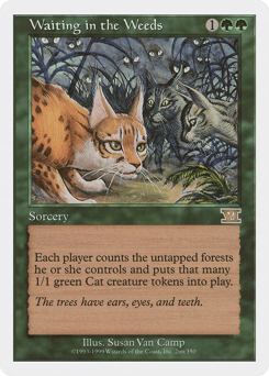 Each player creates a 1/1 green Cat creature token for each untapped Forest they control.