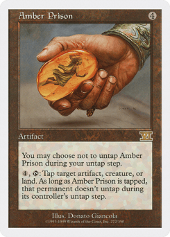 You may choose not to untap this artifact during your untap step. {4}, {T}: Tap target artifact, creature, or land. That permanent doesn't untap during its controller's untap step for as long as this artifact remains tapped.