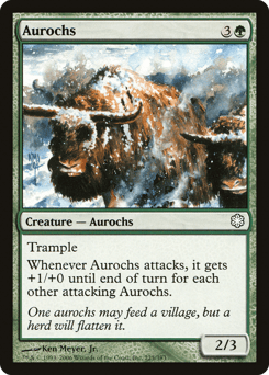 Trample Whenever this creature attacks, it gets +1/+0 until end of turn for each other attacking Aurochs.