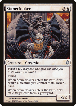 Flash Flying When this creature enters, return a creature you control to its owner's hand. When this creature enters, exile target card from a graveyard.