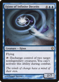 Flying {T}: Exchange control of two target nonlegendary creatures. You can't activate this ability during combat.