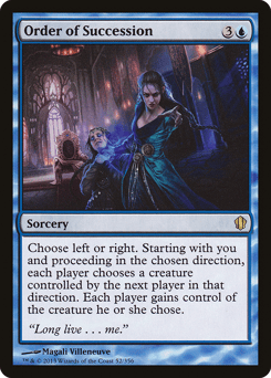 Choose left or right. Starting with you and proceeding in the chosen direction, each player chooses a creature controlled by the next player in that direction. Each player gains control of the creature they chose.
