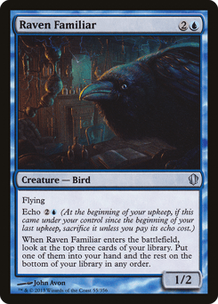 Flying Echo {2}{U} (At the beginning of your upkeep, if this came under your control since the beginning of your last upkeep, sacrifice it unless you pay its echo cost.) When this creature enters, look at the top three cards of your library. Put one of them into your hand and the rest on the bottom of your library in any order.