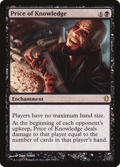 Players have no maximum hand size. At the beginning of each opponent's upkeep, this enchantment deals damage to that player equal to the number of cards in that player's hand.