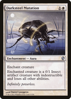 Enchant creature Enchanted creature is an Insect artifact creature with base power and toughness 0/1 and has indestructible, and it loses all other abilities, card types, and creature types.