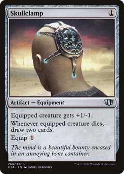 Equipped creature gets +1/-1. Whenever equipped creature dies, draw two cards. Equip {1}