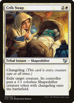 Changeling (This card is every creature type.) Exile target creature. Its controller creates a 1/1 colorless Shapeshifter creature token with changeling.