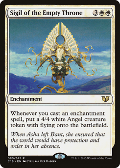 Whenever you cast an enchantment spell, create a 4/4 white Angel creature token with flying.