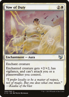 Enchant creature Enchanted creature gets +2/+2, has vigilance, and can't attack you or planeswalkers you control.