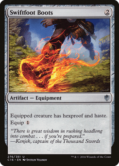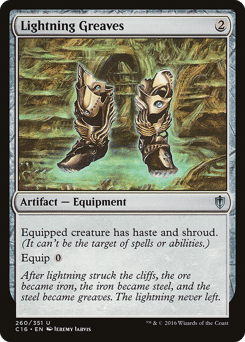 Equipped creature has hexproof and haste. (It can't be the target of spells or abilities your opponents control. It can attack and {T} no matter when it came under your control.) Equip {1} ({1}: Attach to target creature you control. Equip only as a sorcery.)