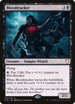 Flying {B}, Pay 2 life: Put a +1/+1 counter on this creature. When this creature leaves the battlefield, draw a card for each +1/+1 counter on it.