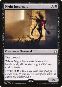 Deathtouch When this creature leaves the battlefield, all creatures get -3/-3 until end of turn. Evoke {3}{B} (You may cast this spell for its evoke cost. If you do, it's sacrificed when it enters.)