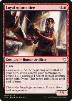 Haste Lieutenant — At the beginning of combat on your turn, if you control your commander, create a 1/1 colorless Thopter artifact creature token with flying. That token gains haste until end of turn.