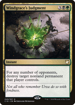 [+2]: Discard a card, then draw a card. If a land card is discarded this way, draw an additional card. [−3]: Return up to two target land cards from your graveyard to the battlefield. [−11]: Destroy up to six target nonland permanents, then create six 2/2 green Cat Warrior creature tokens with forestwalk. Lord Windgrace can be your commander.