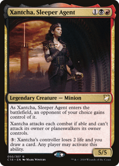 Xantcha enters under the control of an opponent of your choice. Xantcha attacks each combat if able and can't attack its owner or planeswalkers its owner controls. {3}: Xantcha's controller loses 2 life and you draw a card. Any player may activate this ability.