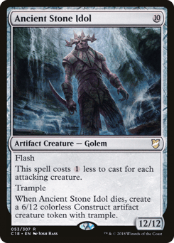 Flash This spell costs {1} less to cast for each attacking creature. Trample When this creature dies, create a 6/12 colorless Construct artifact creature token with trample.