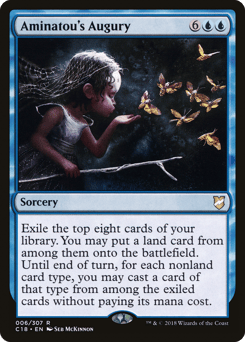 [+1]: Draw a card, then put a card from your hand on top of your library. [−1]: Exile another target permanent you own, then return it to the battlefield under your control. [−6]: Choose left or right. Each player gains control of all nonland permanents other than Aminatou controlled by the next player in the chosen direction. Aminatou, the Fateshifter can be your commander.