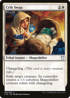Changeling (This card is every creature type.) Exile target creature. Its controller creates a 1/1 colorless Shapeshifter creature token with changeling.