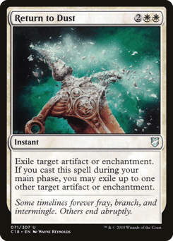 Exile target artifact or enchantment. If you cast this spell during your main phase, you may exile up to one other target artifact or enchantment.