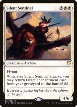 Flying Whenever this creature attacks, you may return target enchantment card from your graveyard to the battlefield.