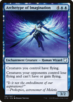 When this enchantment enters, it becomes an Aura with enchant creature. Manifest the top card of your library and attach this enchantment to it. (To manifest a card, put it onto the battlefield face down as a 2/2 creature. Turn it face up any time for its mana cost if it's a creature card.) Enchanted creature has flying and hexproof.