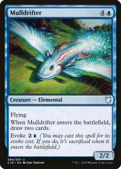 Flying When this creature enters, draw two cards. Evoke {2}{U} (You may cast this spell for its evoke cost. If you do, it's sacrificed when it enters.)