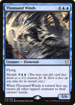 Flying Morph {5}{U}{U} (You may cast this card face down as a 2/2 creature for {3}. Turn it face up any time for its morph cost.) When this creature is turned face up, return all other tapped creatures to their owners' hands.