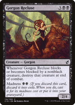This creature attacks each combat if able. Whenever this creature attacks, discard your hand, then draw three cards. Madness {1}{R} (If you discard this card, discard it into exile. When you do, cast it for its madness cost or put it into your graveyard.)