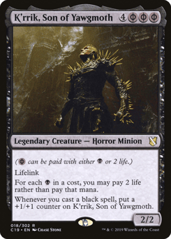 ({B/P} can be paid with either {B} or 2 life.) Lifelink For each {B} in a cost, you may pay 2 life rather than pay that mana. Whenever you cast a black spell, put a +1/+1 counter on K'rrik.