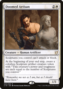 Sculptures you control can't attack or block. At the beginning of your end step, create a colorless Sculpture artifact creature token with "This token's power and toughness are each equal to the number of Sculptures you control."