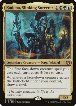 The first face-down creature spell you cast each turn costs {3} less to cast. Whenever a face-down creature you control enters, draw a card.