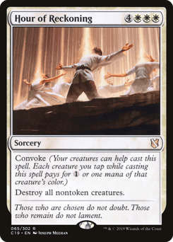 Convoke (Your creatures can help cast this spell. Each creature you tap while casting this spell pays for {1} or one mana of that creature's color.) Destroy all nontoken creatures.