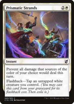 Prevent all damage that sources of the color of your choice would deal this turn. Flashback—Tap an untapped white creature you control. (You may cast this card from your graveyard for its flashback cost. Then exile it.)