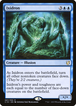 As this creature enters, turn all other nontoken creatures face down. (They're 2/2 creatures.) Ixidron's power and toughness are each equal to the number of face-down creatures on the battlefield.