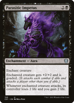 Enchant creature Enchanted creature gets +1/+1 and is goaded. (It attacks each combat if able and attacks a player other than you if able.) Whenever enchanted creature attacks, each other creature that's attacking one of your opponents gets +1/+1 until end of turn.