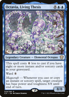 This spell costs {8} less to cast if you have eight or more instant and/or sorcery cards in your graveyard. Ward {8} Magecraft — Whenever you cast or copy an instant or sorcery spell, target creature has base power and toughness 8/8 until end of turn.