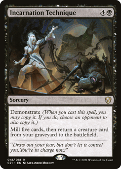 Demonstrate (When you cast this spell, you may copy it. If you do, choose an opponent to also copy it.) Mill five cards, then return a creature card from your graveyard to the battlefield.