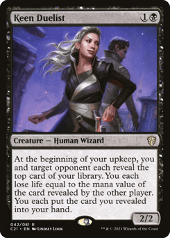 At the beginning of your upkeep, you and target opponent each reveal the top card of your library. You each lose life equal to the mana value of the card revealed by the other player. You each put the card you revealed into your hand.