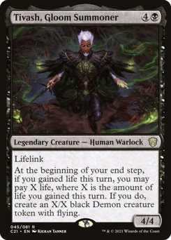 Lifelink At the beginning of your end step, if you gained life this turn, you may pay X life, where X is the amount of life you gained this turn. If you do, create an X/X black Demon creature token with flying.