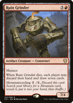Menace When this creature dies, each player may discard their hand and draw seven cards. Mountaincycling {2} ({2}, Discard this card: Search your library for a Mountain card, reveal it, put it into your hand, then shuffle.)