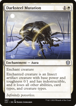Enchant creature Enchanted creature is an Insect artifact creature with base power and toughness 0/1 and has indestructible, and it loses all other abilities, card types, and creature types.