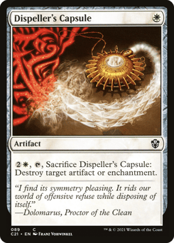 {2}{W}, {T}, Sacrifice this artifact: Destroy target artifact or enchantment.