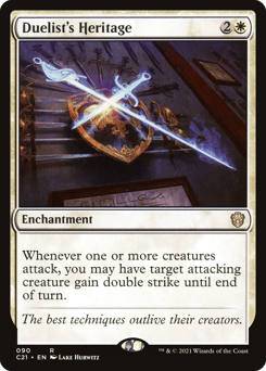Whenever one or more creatures attack, you may have target attacking creature gain double strike until end of turn.