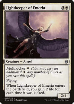 Multikicker {W} (You may pay an additional {W} any number of times as you cast this spell.) Flying When this creature enters, you gain 2 life for each time it was kicked.