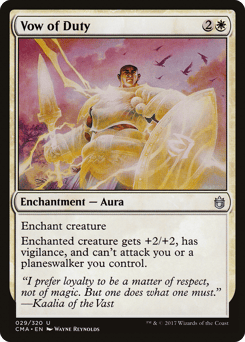 Enchant creature Enchanted creature gets +2/+2, has vigilance, and can't attack you or planeswalkers you control.